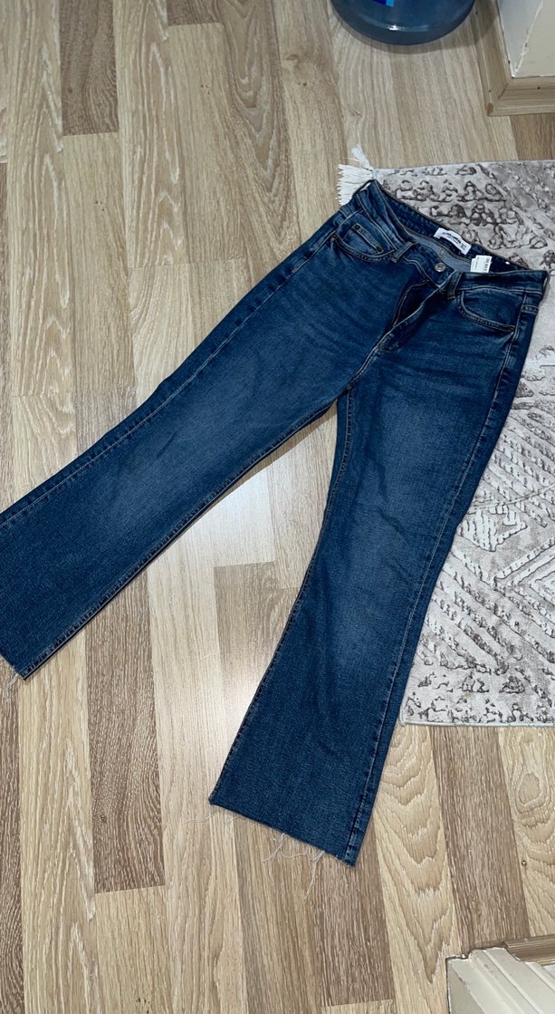 Mavi renkli, regular fit kesime sahip midi boy kadın denim jean. Günlük kullanıma uygun, normcore tarzda, kemerli ve hafif batik desenlidir. Likralı kumaş çok rahat bir kot ancak beli bana bol gelmesi sebebi ile satışta