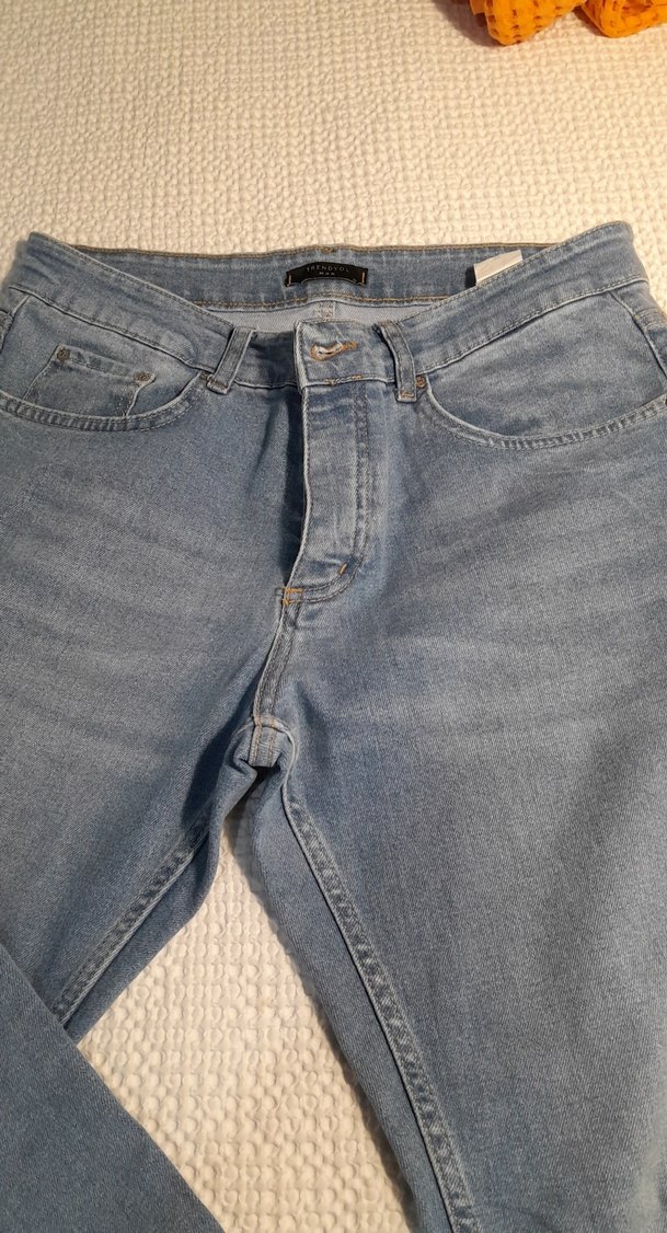 Acık mavi TRENDYOL MAN düğmeli ve regular fit erkek kot pantolon. Günlük kullanıma uygun, sade desenli ve normal boyda rahat bir model.