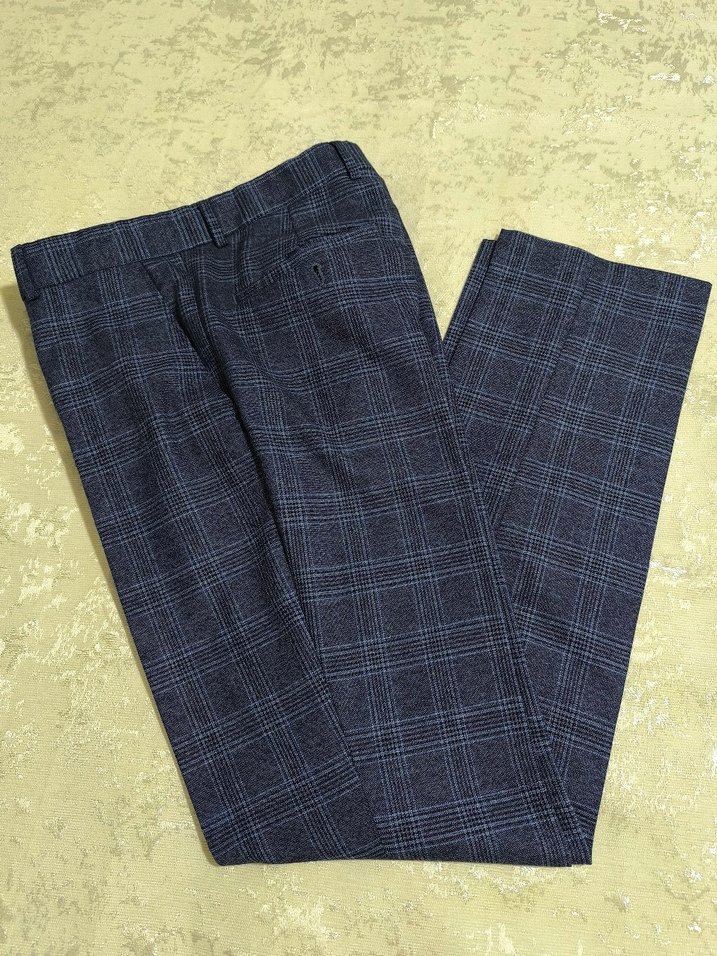 Mavi renkte, regular fit ve pile detaylı, sentetik kumaştan yapılmış erkek ofis pantolonu. Midi boyda, günlük ve iş stiline uygundur. kumaş pantolon hiç bir sorunu yoktur