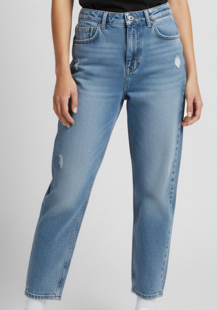 Mavi denimden, regular fit ve midi boyda kadın jean. Düz ve hafif yıpranmış detaylarla rahat ve şık sokak stili için uygun. Günlük kullanıma ideal.