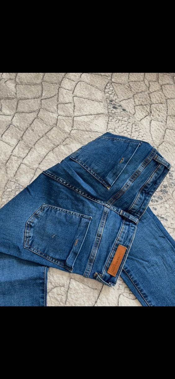 Kadınlar için mavi regular fit denim pantolon, fermuarlı detaylara sahip, günlük rahat sokak stili için uygundur. Midi boy ve klasik desensiz tasarım.