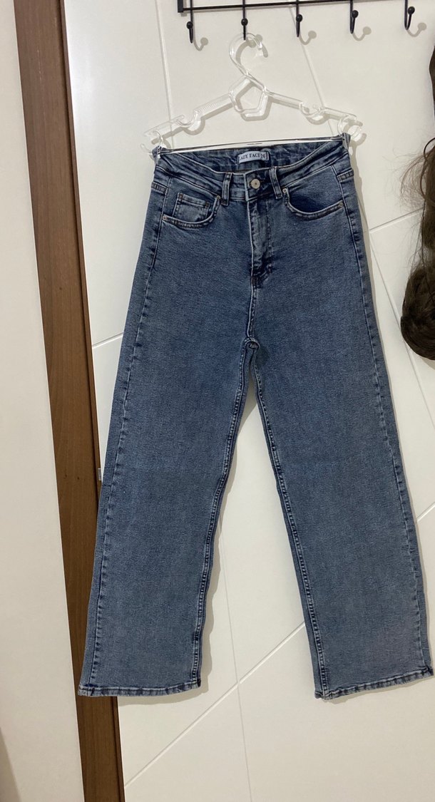 Mavi renkte, regular fit ve midi boyda kadın denim pantolon, gündelik kullanıma uygun, zahmetsiz şıklık sunar.