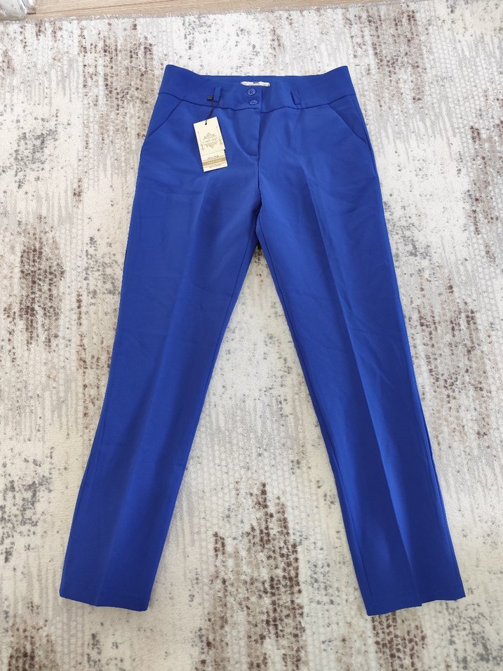 Mavi renk, regular fit kadın kumaş pantolon. Yumuşak sentetik kumaştan, desen içermeyen, normal boyda. Ofis ve günlük şık kombinlere uygun, zahmetsiz şıklık sağlar.