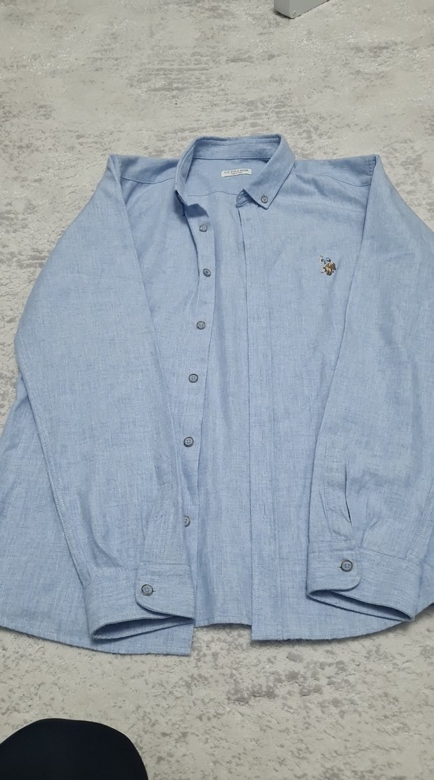 Uzun kollu, keten kumaştan yapılmış mavi erkek gömleği. Düğmeli ve regular fit kesime sahip, günlük rahat kullanıma uygun sade tasarım.