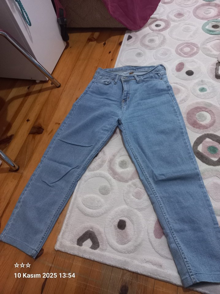 Mavi renkte, regular fit ve midi boy kot pantolon. Desensiz sade tasarımıyla günlük rahat ve şık bir sokak stili sunar. ️2 kere kullanilmistir. Kusuru yokdur.