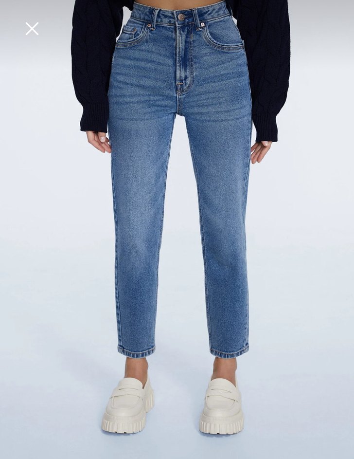 Mavi regular fit midi kesim, rahat denim kumaştan günlük kullanıma uygun kadın pantolonu.