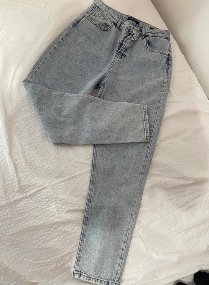 Mavi renk, regular fit ve midi boyda denim kadın jean pantolon, günlük kullanım için rahat ve şık bir sokak stili sunar.