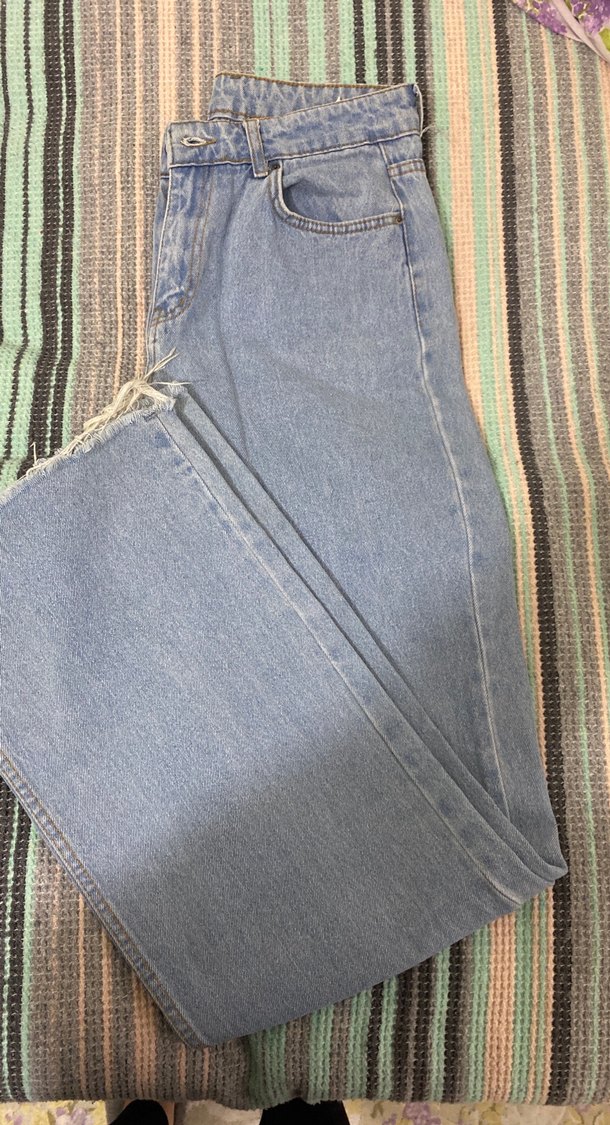 Mavi renkli, regular fit midi kadın kot pantolon. Fermuarlı ve pastel tonlarda tie-dye desenli, günlük kullanıma uygun rahat bir model.
