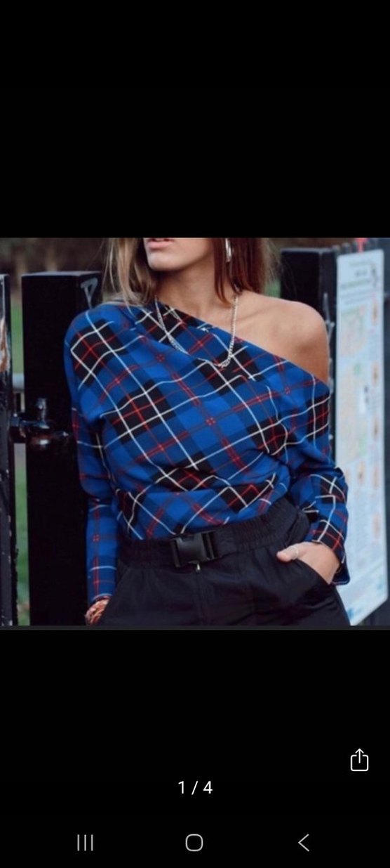 Mavi renk düşük omuz Uzun Kollu Kadın Bluz