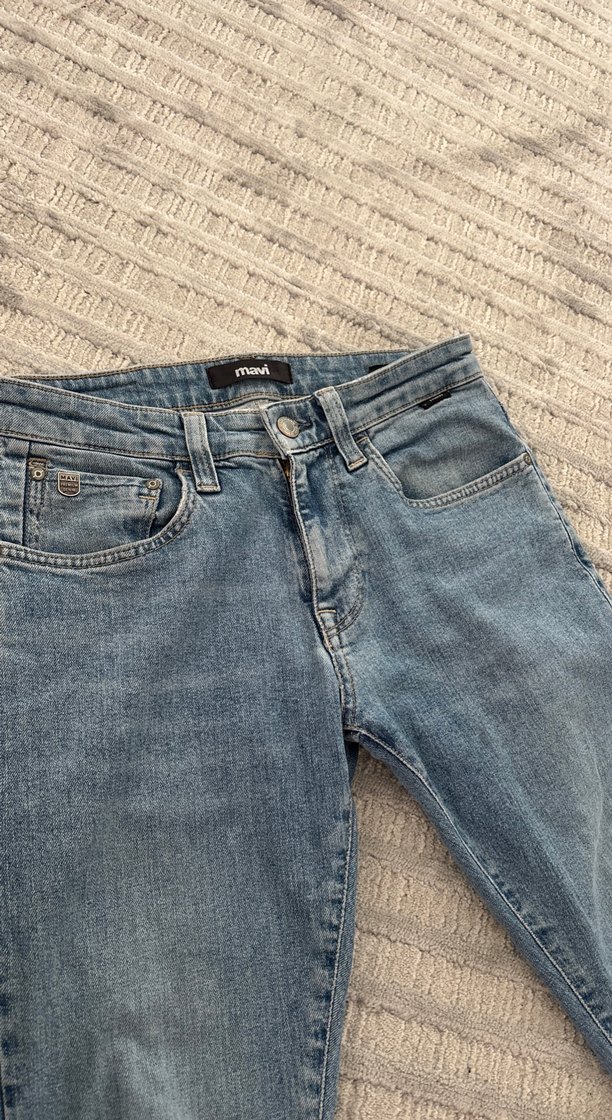 Mavi renkli, normal boy ve regular fit denim jean. Desensiz, rahat ve günlük kullanıma uygun, zahmetsiz şıklık sunar. Eşimin temiz kullanıldı herhangi bi ezilmiş bi yeri yoktur efendim bedeni yazmıyor