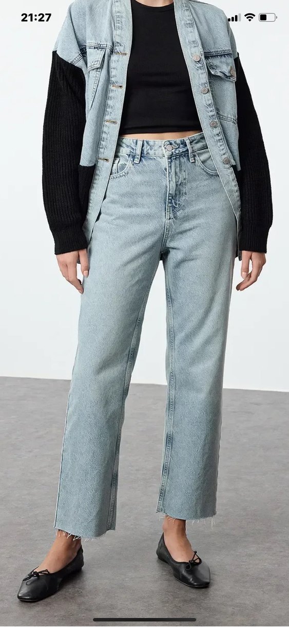 Mavi renk midi boy ve regular fit kesime sahip bu denim pantolon, sade tasarımıyla günlük kullanıma uygun rahat bir şıklık sunar. BELİNDEN BOL OLDUĞU İÇİN SATIYORUM BİR KERE GİYDİM VE HİÇBİR KUSURU YOKTUR