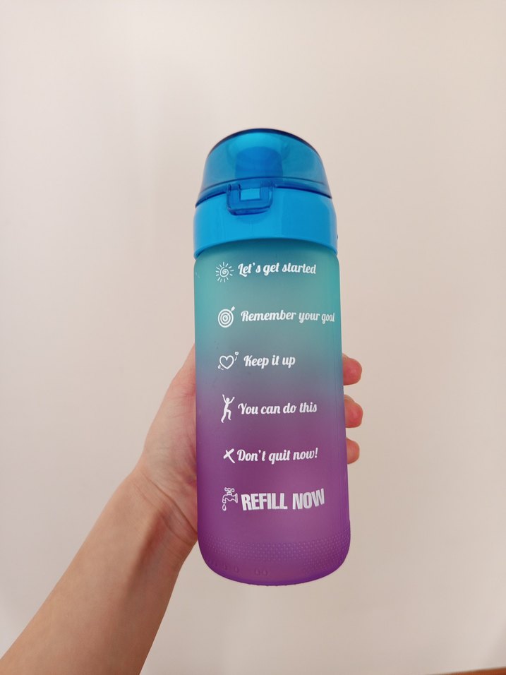2 kez kullanıldı. Sıfır ayarındadır. Sorunsuz motivasyon matarası. 500 ml kadar ölçüsü vardır. #matara #motivasyonmatarası #camsuluk