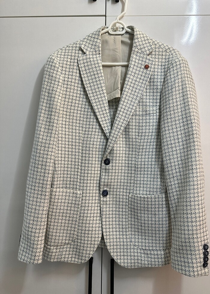 Bir kez giyildi Sırtın bir kısmı ve kolların içi tamamı astarlı keten ceket Sırtında çok az açıklık fotoda var
