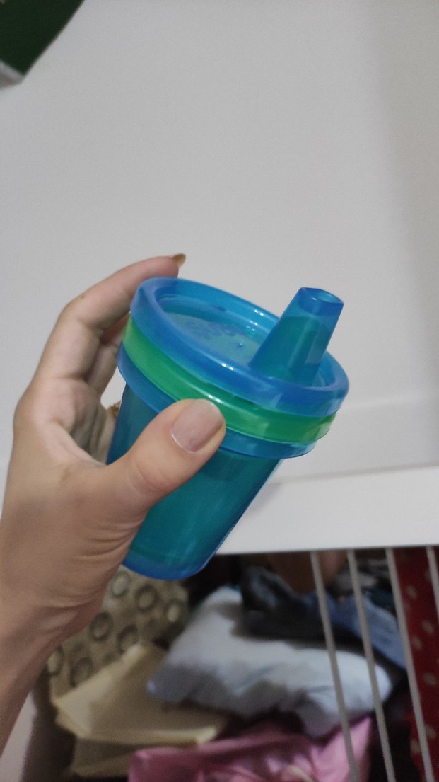 Renkli mavi yeşil tasarıma sahip, dökülmeyi önleyen kapaklı ve yumuşak ağızlıklı bebek bardağı. Kompakt ve kullanımı kolaydır.