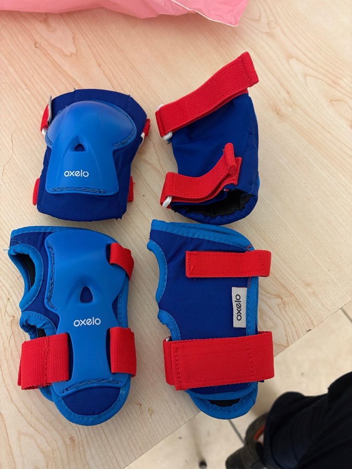 Yumuşak kumaştan, renkli kırmızı cırt cırtlı mavi biker tarzı diz koruyucular. Üzerinde Oxelo markası baskısı bulunur. ️decathlon marka