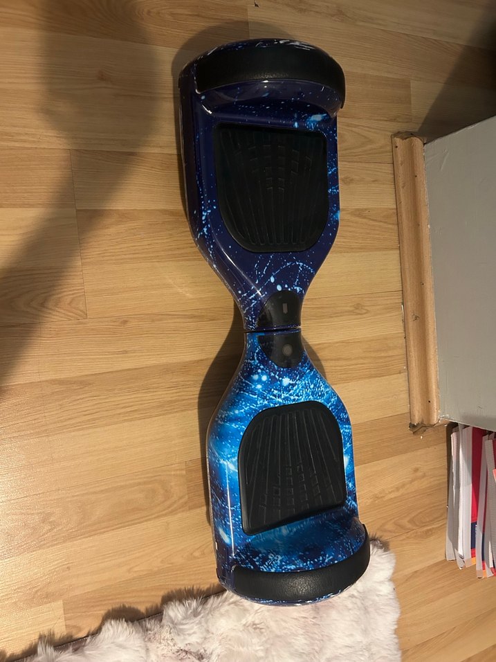 Sadece evde binildi. Canlı galaksi desenli koyu mavi çocuk kaykay scooter, kaymayı önleyen dokulu ayak pedleriyle rahat sürüş sağlar.