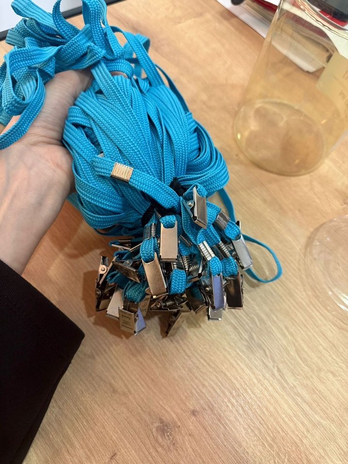 Metal klipsli, dayanıklı kumaştan yapılmış mavi renkli çoklu yaka ipleri.