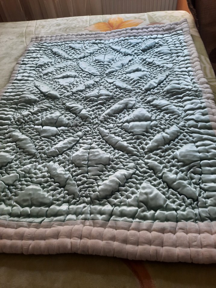 mavi mavirenkli bu yorgan, dikişli desen ve yumuşak dokusu ile rahatlık sağlar, açık renk çerçeveye sahiptir. ️ölçüler resimde mevcut