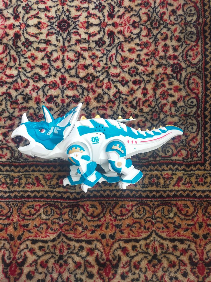 Detaylı özelliklere ve hareketli bacaklara sahip renkli mavi dinozor aksiyon figürü. Hayal gücünü destekler. hareketli sesli sol on ayakta ariza var ama yürür halde arkasinda yumurtlama yeri var ama yumurtalari kayboldu