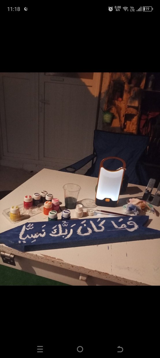 Açık mavi renkte, Arapça yazılı el yapımı ahşap balkon ,bahçe gibi mekanlar için