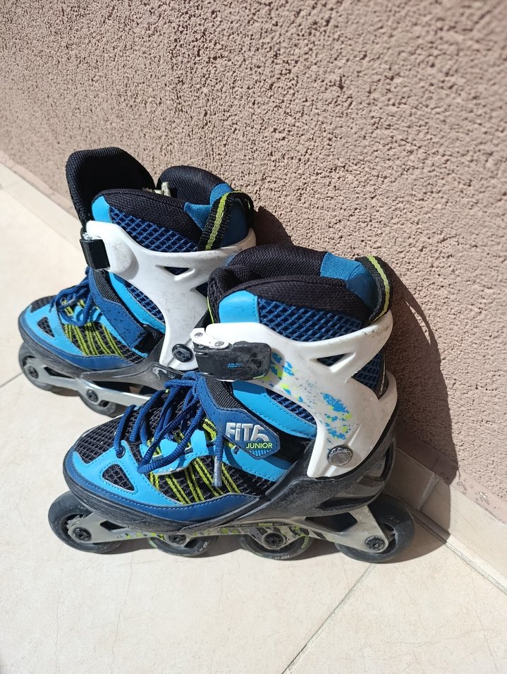 Mavi tonlarında renkli baskılı erkek spor paten. Kauçuk tabanlı ve cırt cırtlı bantlarla güvenli kapanış sağlar, sokak giyimi tarzına uygundur. az kullanıldı temiz. 38_41 numara aralığında