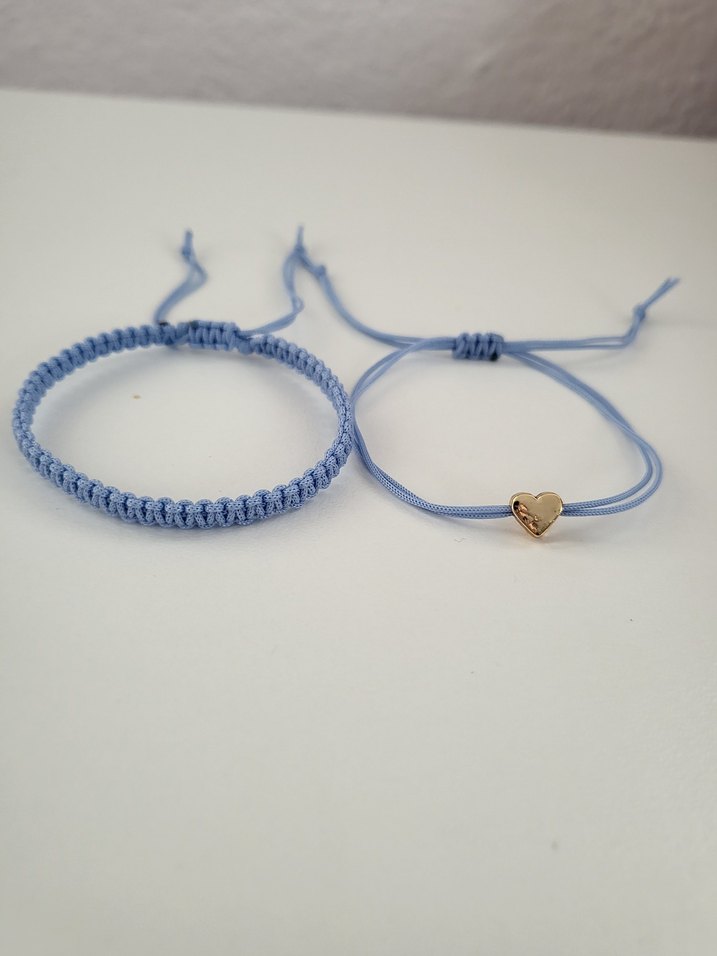 Mavi renkli ikili bileklik biri düz biri kalp figürlü
