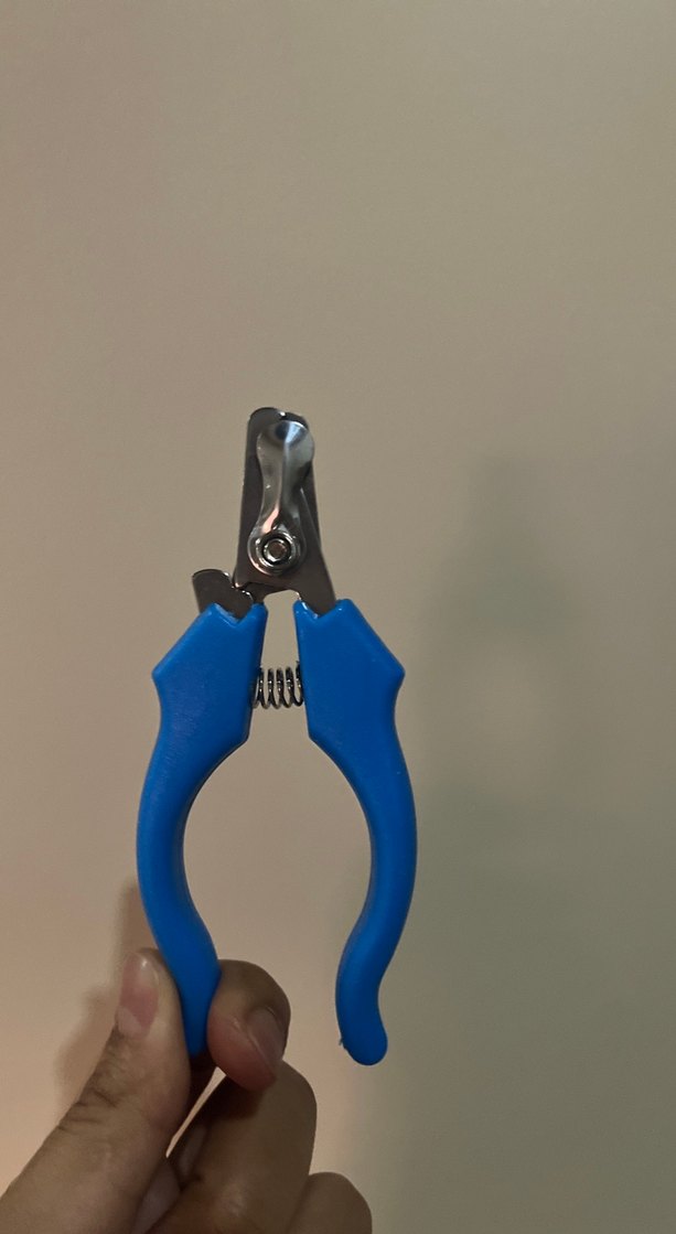 Mavi renkli, ergonomik saplı kedi tırnak makası, kolay kesim için keskin bıçağa sahiptir. Kilidi mevcut