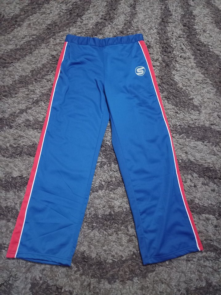 kışlık, mavi renkli ve kırmızı-beyaz şerit detaylı rahat kesim kadın eşofman hiç giyilmemiş. Spor ve günlük kullanıma uygun. ♀️