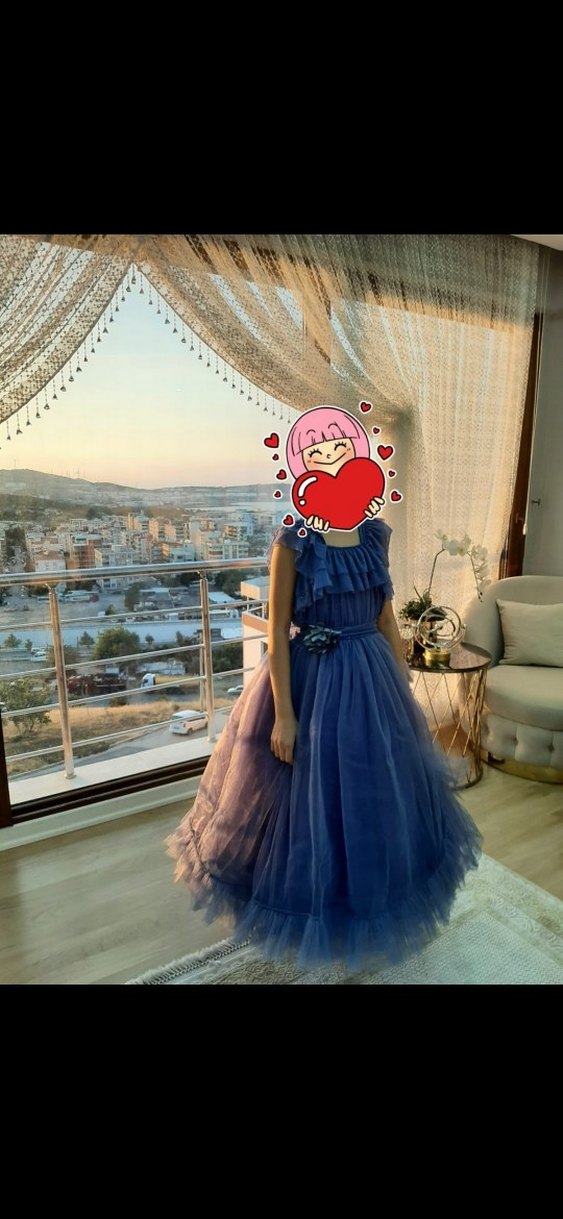 Mavi Renkli Kız Çocuk Fırfırlı Abiye Elbise