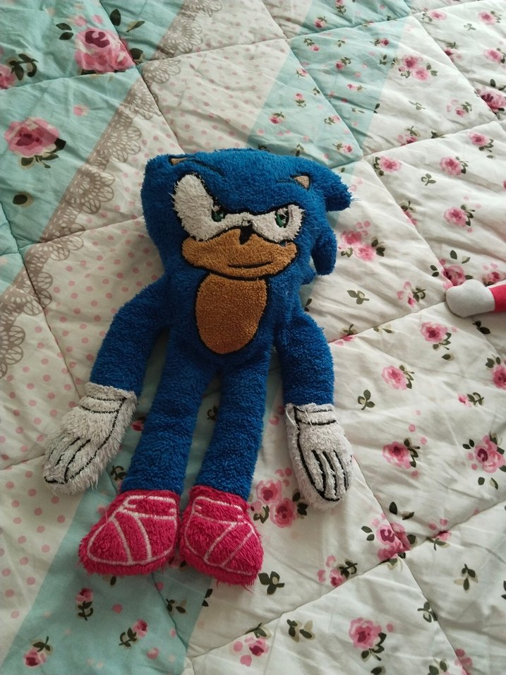Canlı pembe ayakkabılı, ifadeli gözlere sahip yumuşak dokulu mavi renkli peluş oyuncak.