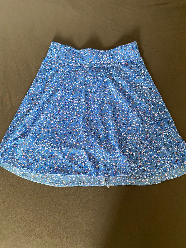 Sentetik kumaştan, bol kesim, renkli volan detaylı mavi,şortlu mini etek. Bohem ve retro sokak tarzı için uygundur.
