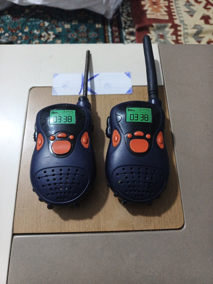 Renkli, mavi gövdeli ve turuncu düğmeli Mavi Renkli telsiz çalışıyor çalışmıyor bilmiyorum