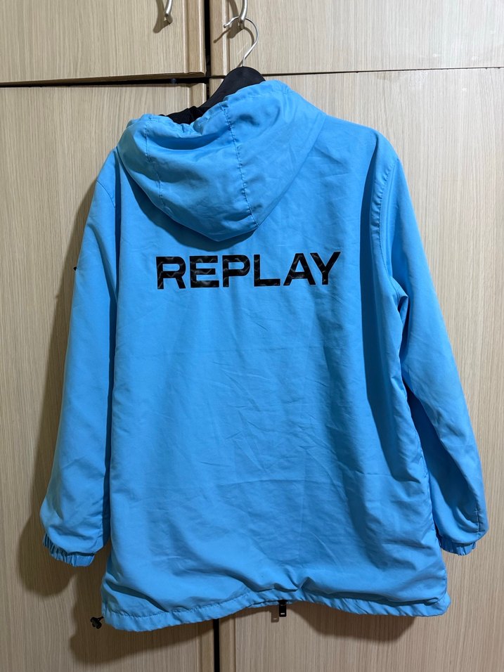 Mavi renkli, bol kesim erkek rüzgarlık, uzun kollu ve renkli baskılıdır. Fermuarlı ve kapüşonlu tasarımıyla sıcak tutar. Arkada 'REPLAY' yazısı bulunur. ️ Ürün nerdese hiç kullanılmadı orjinaldir rengi turkuaz mavi L / XL giyene olur fotoğraflarda ölçüleri vardır detaylı bakıp sonra iletişime geçiniz Diğer ilanlarada bakınız