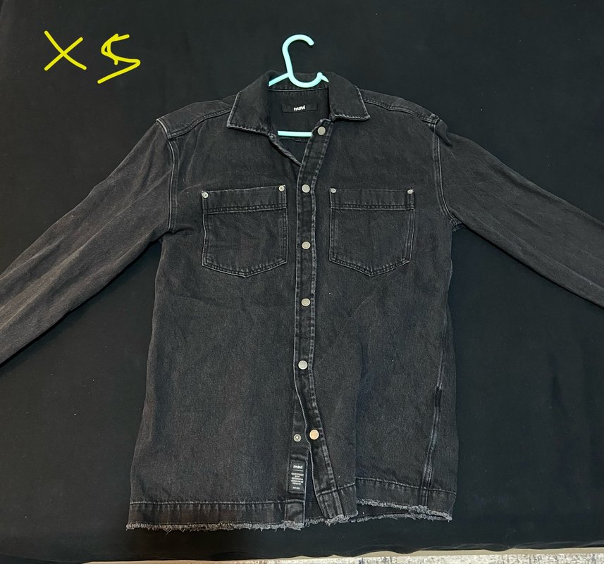 Xs ama S giyen de kullanabilir, kalıbı geniş Düğmeli, yakalı ve uzun kollu siyah denim gömlek. Midi boyda, bol kesim ve desensiz tasarımıyla günlük kullanıma uygundur.