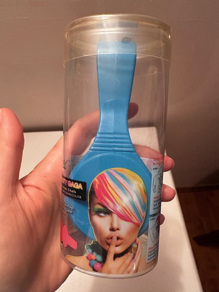 Yıkanınca çıkıyor. Çok az kullanıldı. Mavi renkli saç tebeşiri. Geçici boya saç boyası saç tebeşiri mavi boya mavi saç