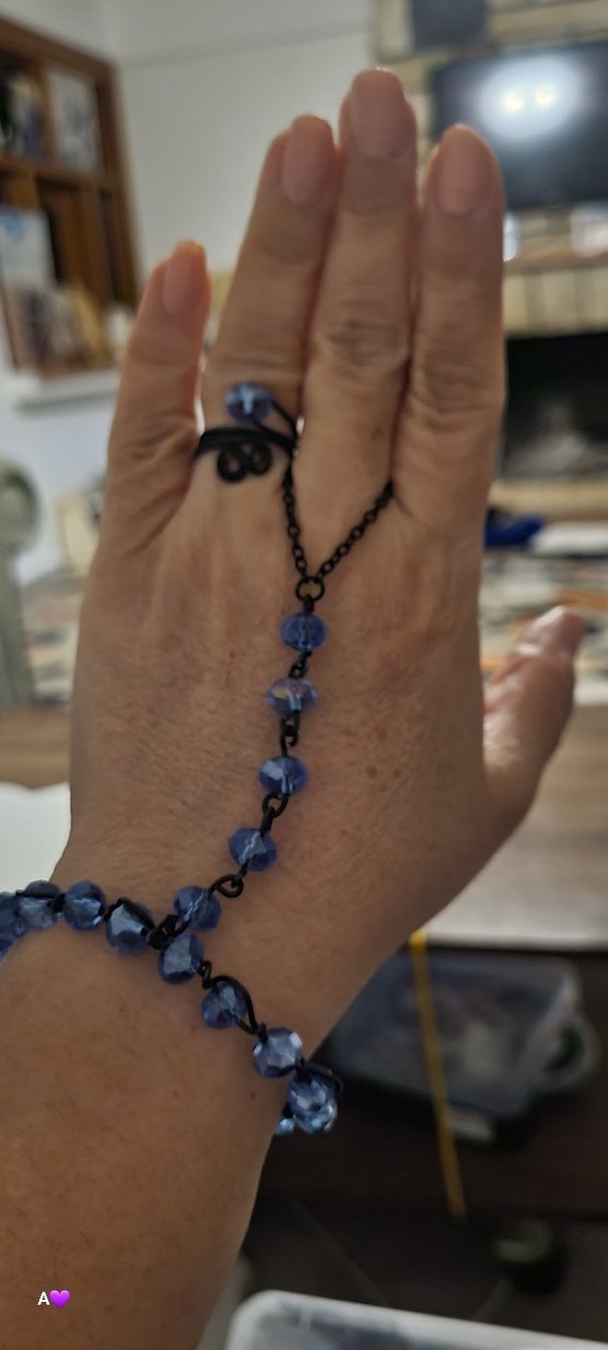 Bu kadın el zinciri, siyah zincirle bağlı koyu mavi boncuklardan oluşur ve gotik ile bohem tarzları günlük kullanıma sunar.