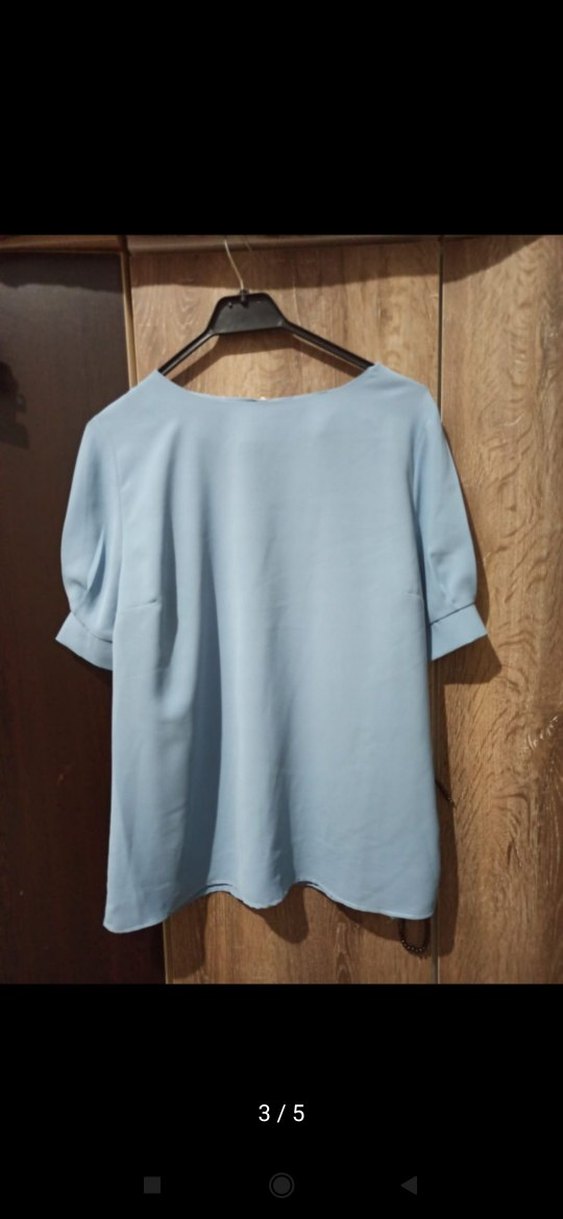 Mavi, kısa kollu, salaş kesim ve bisiklet yaka kadın bluz. İpeksi kumaştan, drapeli tasarıma sahip, gündelik rahat tarz için uygun.