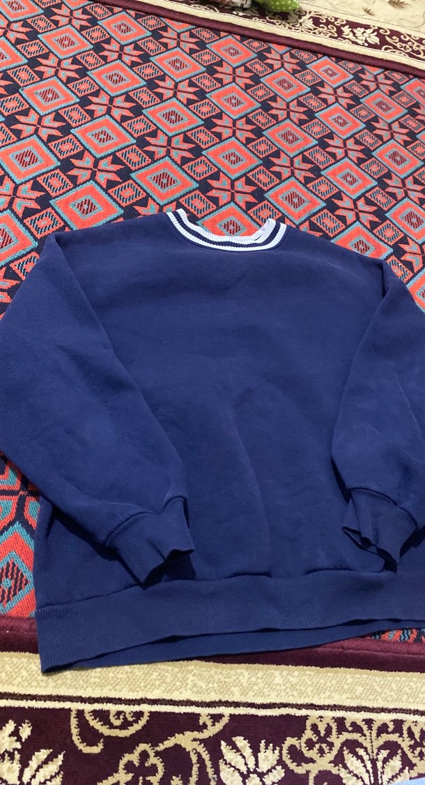 Mavi renkli, yuvarlak yaka ve uzun kollu, rahat kesim kadın sweatshirtü. Yumuşak ve sıcak kumaştan, günlük sokak stiline uygun.