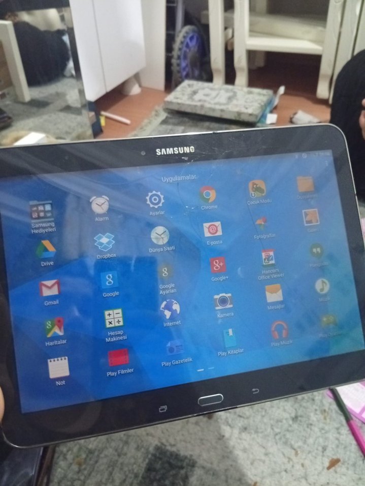 Mavi renkte, dokunmatik ekranlı Samsung tablet. Çok sayıda uygulama ve kullanıcı dostu arayüz ile günlük kullanım için uygun.