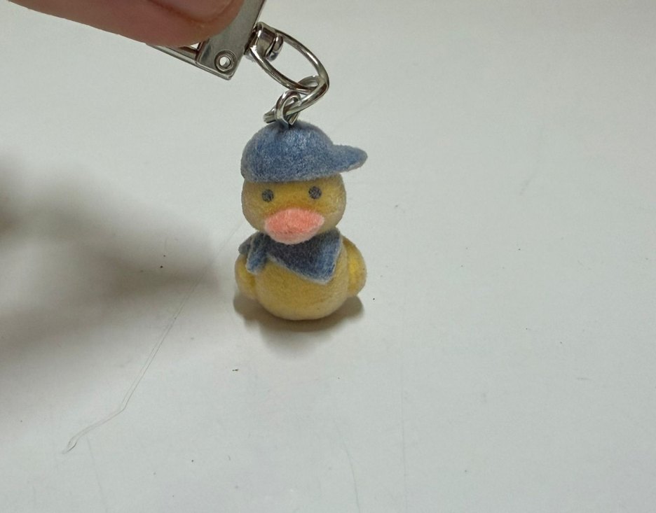 Mavi şapkalı ördek figürlü anahtarlık. Anahtarlarınıza sıcak bir dokunuş katıyor.