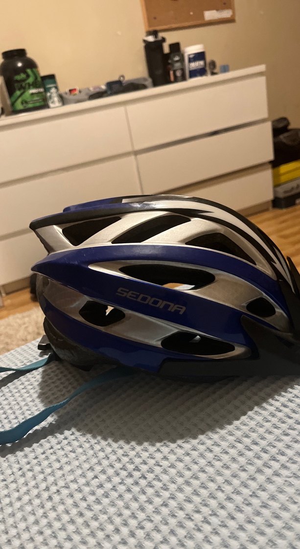 Plastik malzemeden yapılmış, koyu mavi Sedona biker kask. Velcro ile kapanır, sade ve desensiz tasarıma sahiptir. ️