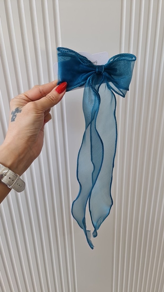 Mavi Şeffaf Kurdeleli Saç Aksesuarı