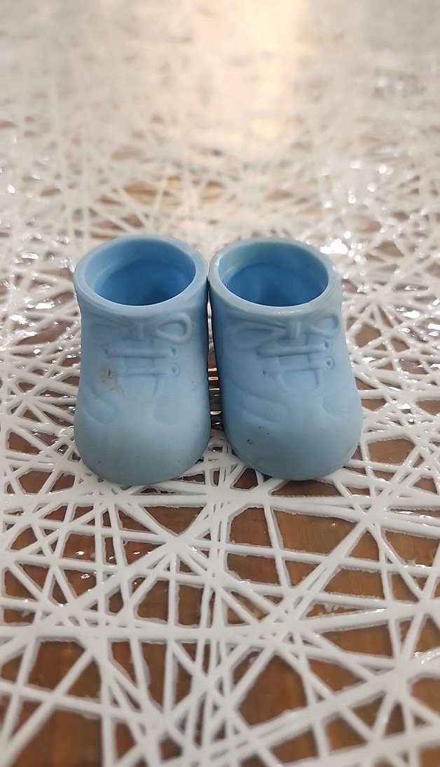 Pastel mavi renkte, dantel detaylı, seramikten yapılmış, desen içermeyen, geleneksel tarzda erkek bebek patikleri.