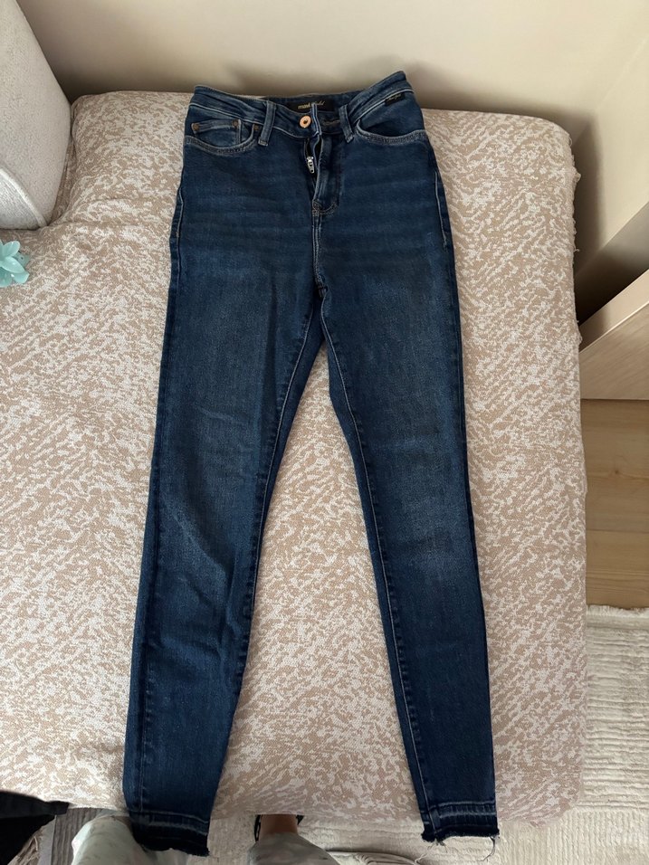 lacivert renkte, dar kesim kadın kot pantolon. Günlük kullanıma uygun, desensiz sade tasarım. Paçaları kesiktir sorunu yoktur 24 beden 27 boy