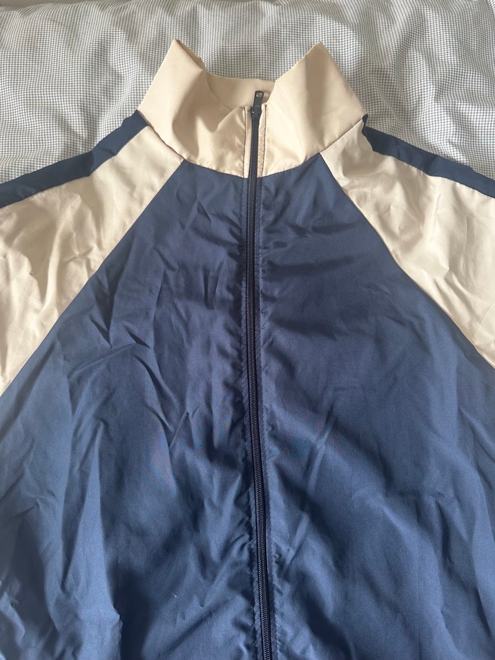 Parlak sentetik kumaştan, fermuarlı ve yüksek yakalı erkek ve kızlar için rüzgarlık. Uzun kollu, fitted kesim ve normal boyda, dış mekan kullanımı için uygundur. ️