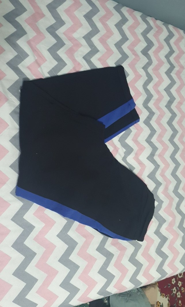 Elastik bel ve mavi yan şeritlere sahip, koyu mavi renkli, spor ve rahat kullanıma uygun hamile taytı. ♀️