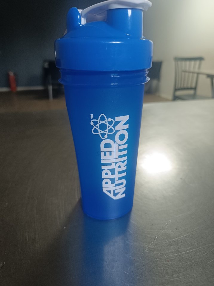 Canlı mavi renkte, kapaklı ve Applied Nutrition logosu bulunan beslenme şişesi.