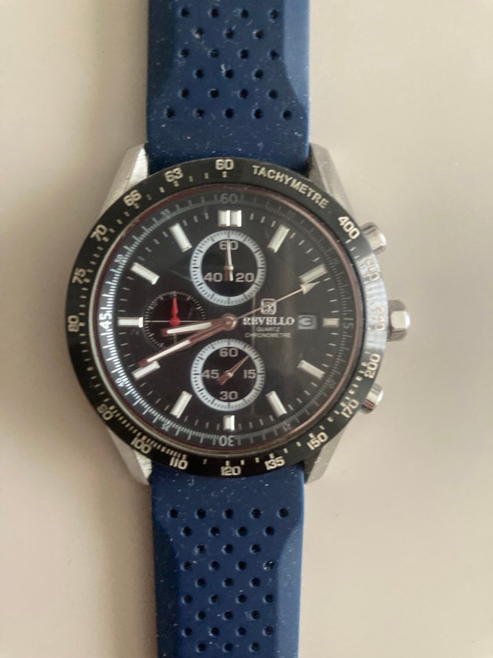 ORJİNAL REVELLO erkek kol saati bütün tuşlar aktif çalışıyor kordonu silikon sonradan alındı orjinal değildir kordon