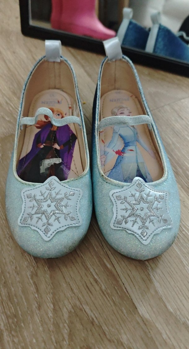 Frozen mavi simli kauçuk kız çocuk bale babeti, kar tanesi desenli ve klasik tarzdadır. Üstte bant bulunmaktadır. ❄️