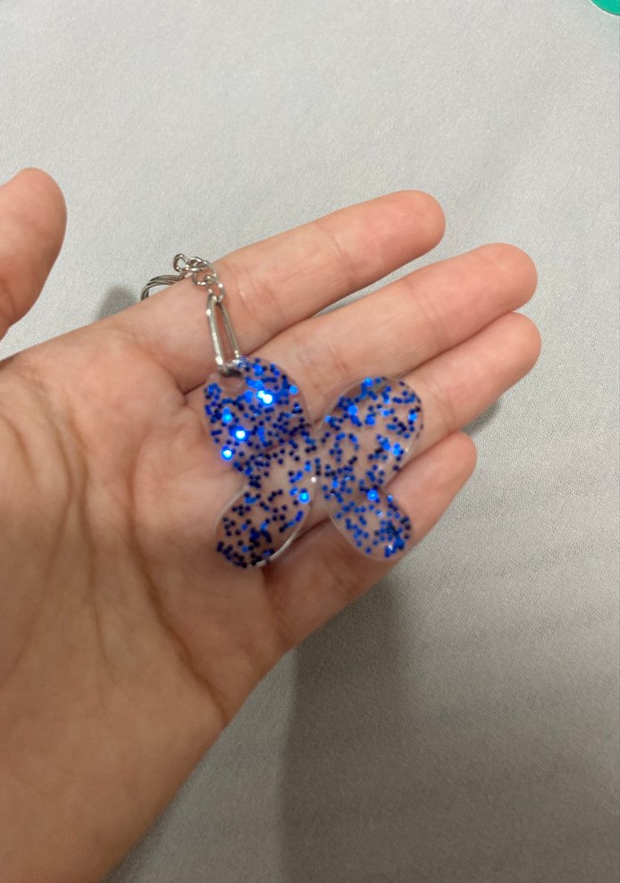 Mavi simli kelebek şeklinde anahtarlık, renkli ve göz alıcı bohem tarzını yansıtıyor. Retro hippie dokunuşu sağlar.